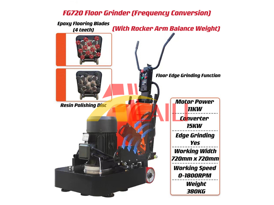 Parameter:1. Motor Power: 11KW 2. Converter: 15KW 3. Working Width: 720mm x 720mm 4. Rotation Speed: 0-1800RPM 5. Weight: 380KG 6. Rough Grinding Blade: Epoxy Flooring Blade 7. Fine Grinding Disc: Resin Polishing Disc 8. Floor Edge Grinding Function: Yes